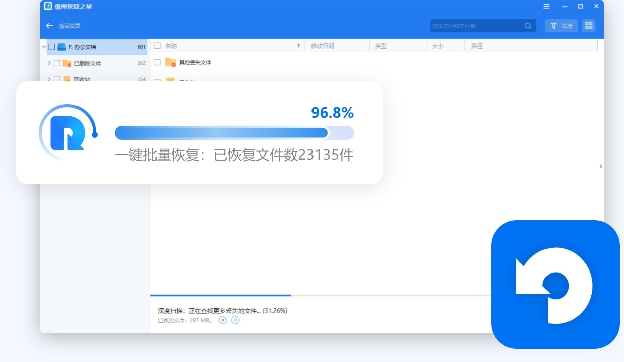正在码一个重要文档的时候电脑突然重启,打开电脑找不到文件了,搜了一圈网上在推荐这个恢复软件,使用的时候可以直接修复预览,没想到真的全部找回来了!