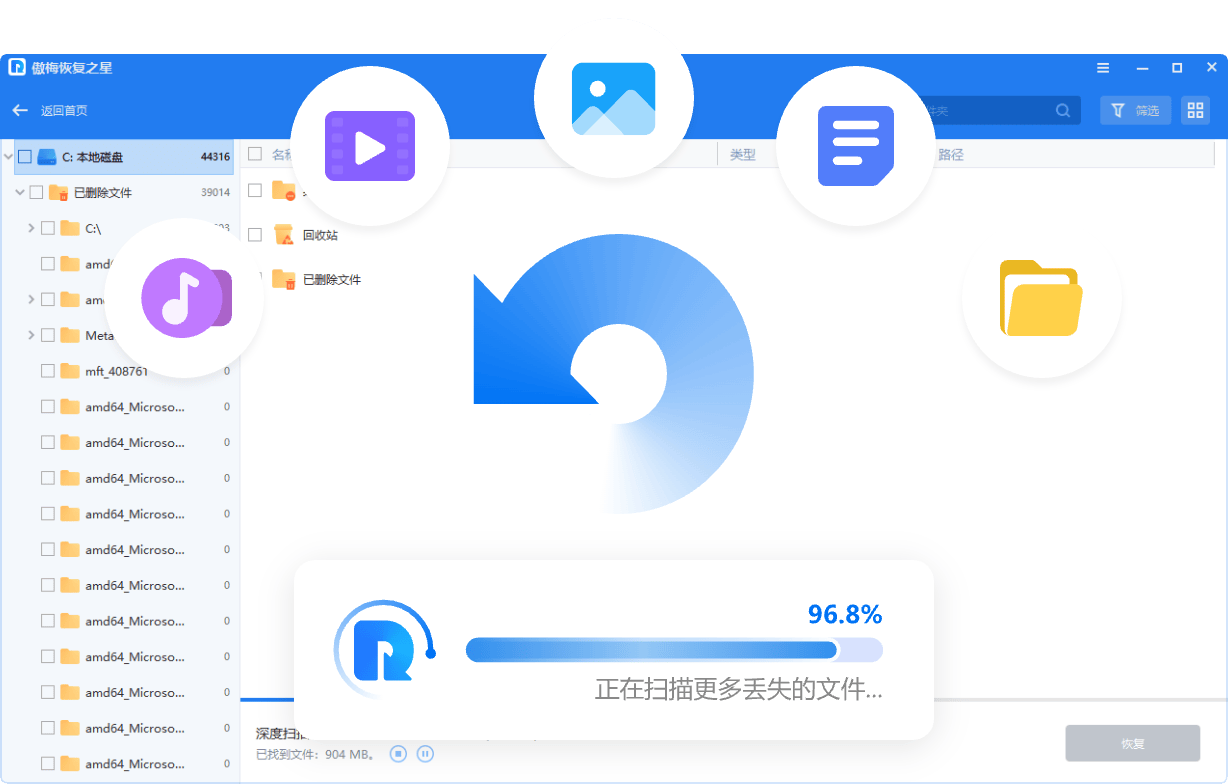 可恢复不小心删除的文件,格式化磁盘,清空回收站,删除分区等问题。